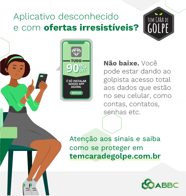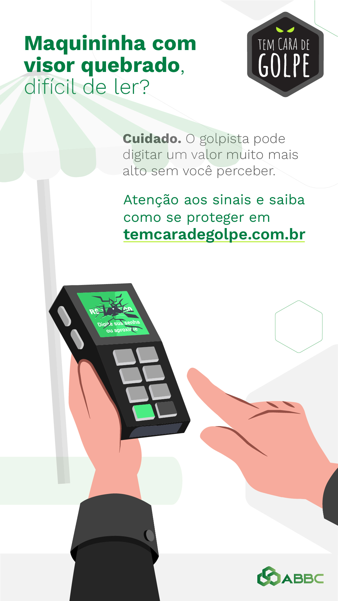 Compartilhe as informações e o material da campanha Tem Cara de Golpe, que você encontra aqui no site, com o maior número possível de pessoas. Aproveite as redes sociais e os grupos no WhatsApp, como o grupo da família, do trabalho e dos amigos, para levar a mensagem a todos. Quanto mais gente souber se prevenir, mais conseguimos dificultar a ação dos golpistas. Você pode ser um agente da mudança.